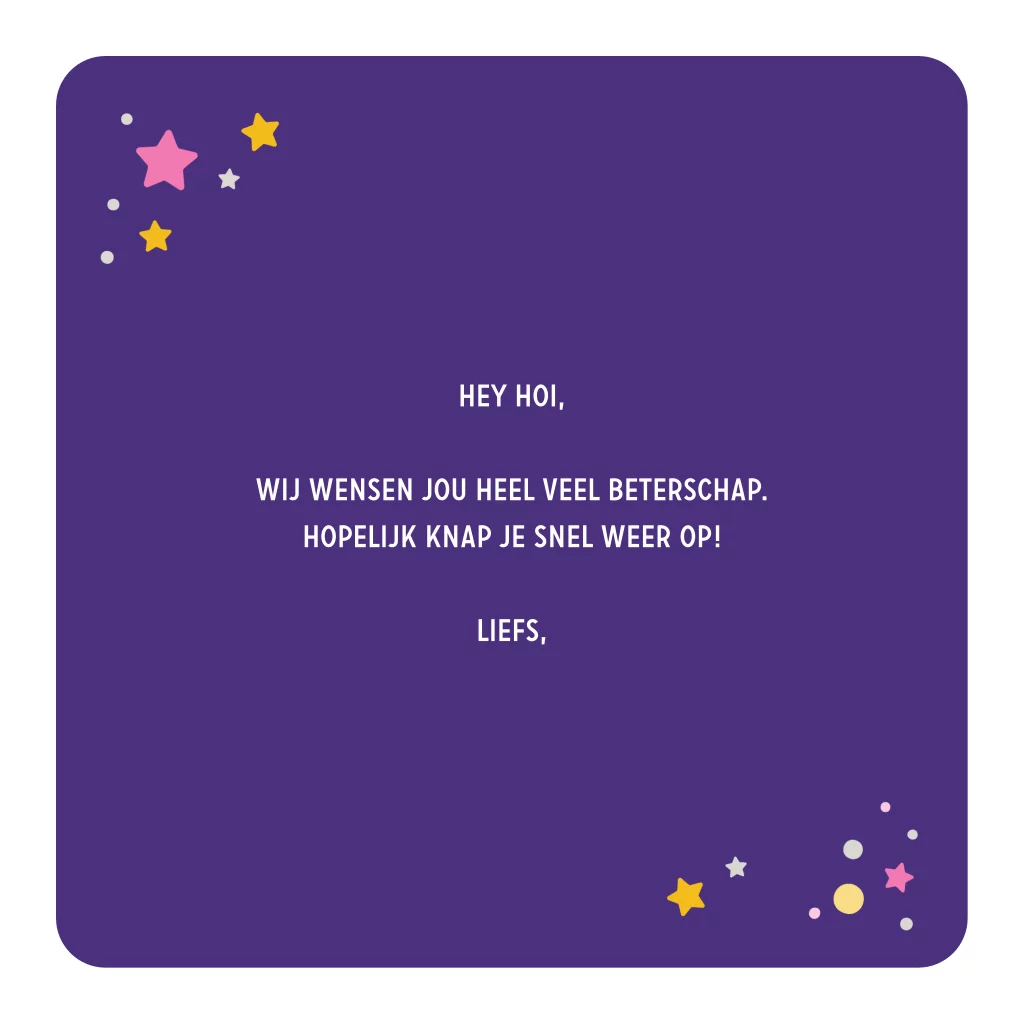 Stuur iemand een beterschapskaart met de tekst 'it's okay not to be okay'. Deze typografische beterschapskaart met een paars kader is een kleurrijk geheel met sterretjes om de ontvanger op te vrolijken.