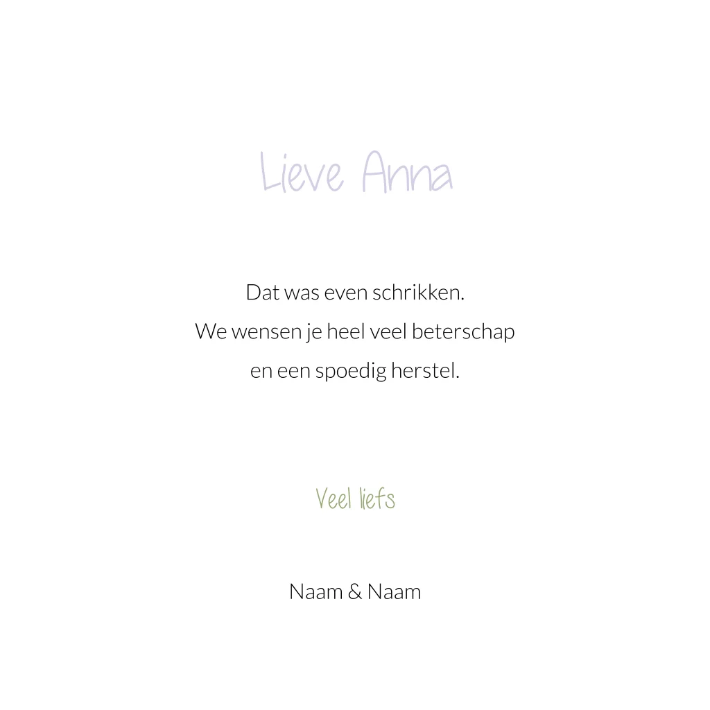 Wanneer iemand ziek is of een operatie heeft ondergaan, is het fijn om een kaartje te krijgen. Een kaartje met een lieve tekst of een mooie bloem is een goede optie. Op dit beterschapskaartje zie je blije madeliefjes bloemen en de tekst 'Beterschap'. Hopelijk knapt degene die deze vrolijke madeliefjes kaart ontvangt snel weer op!