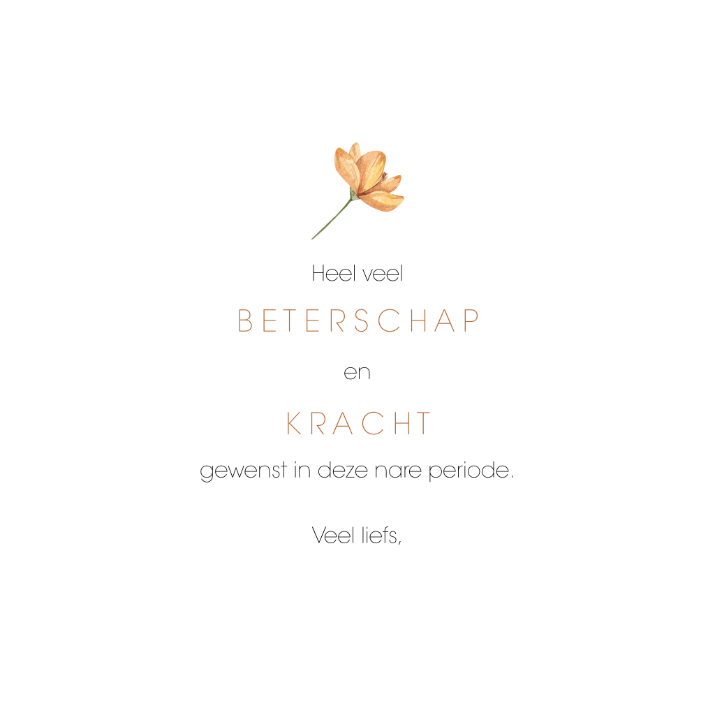 Gaat iemand door een nare periode? Wens diegene veel liefs, kracht en beterschap met deze prachtige wenskaart. De kaart is bedrukt met bloemen in een stijlvolle en romantische botanische stijl.