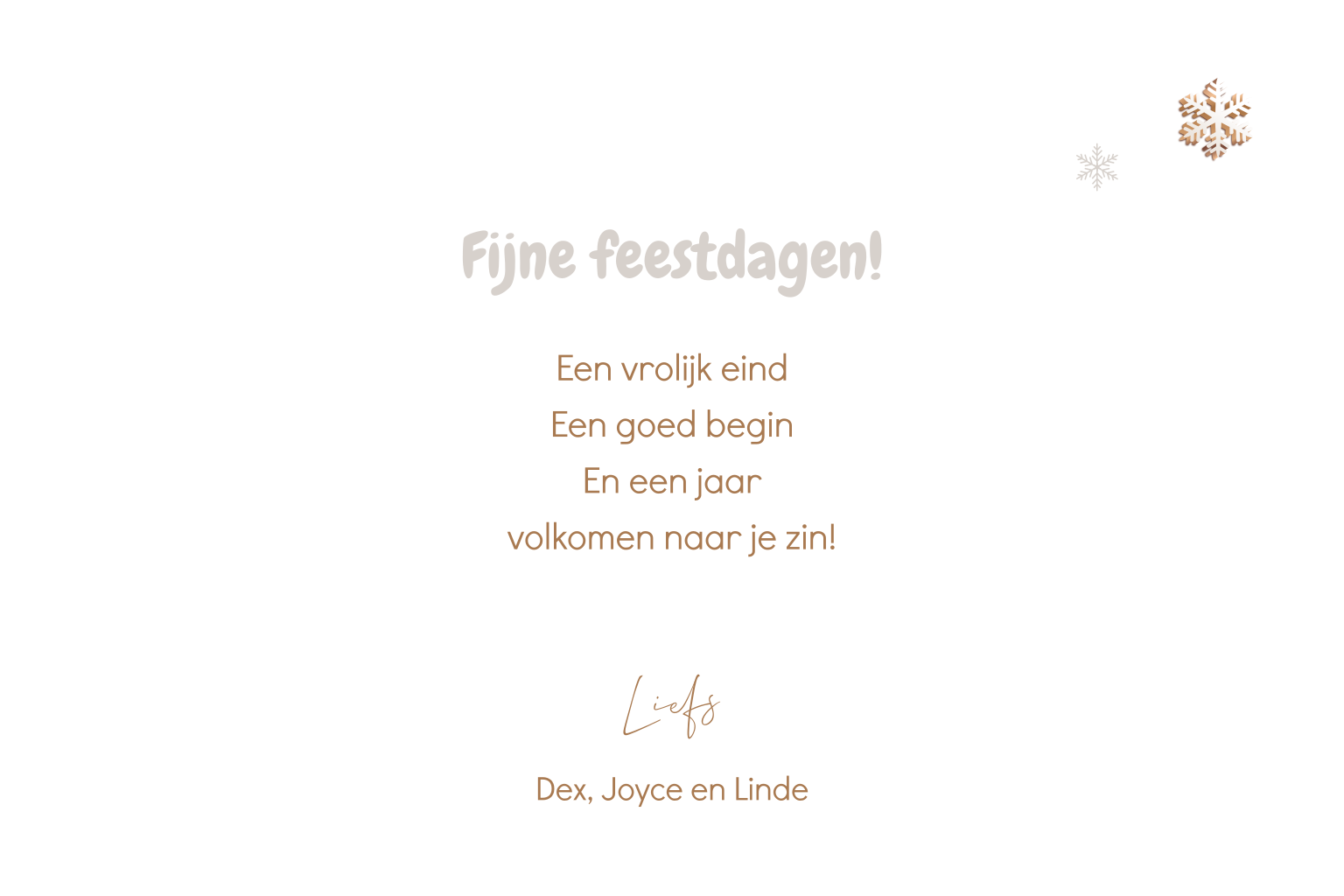 Wenskaart voor kerst in rustige neutrale kleuren, met sprankelende ijskristallen en een leuke eigen foto.