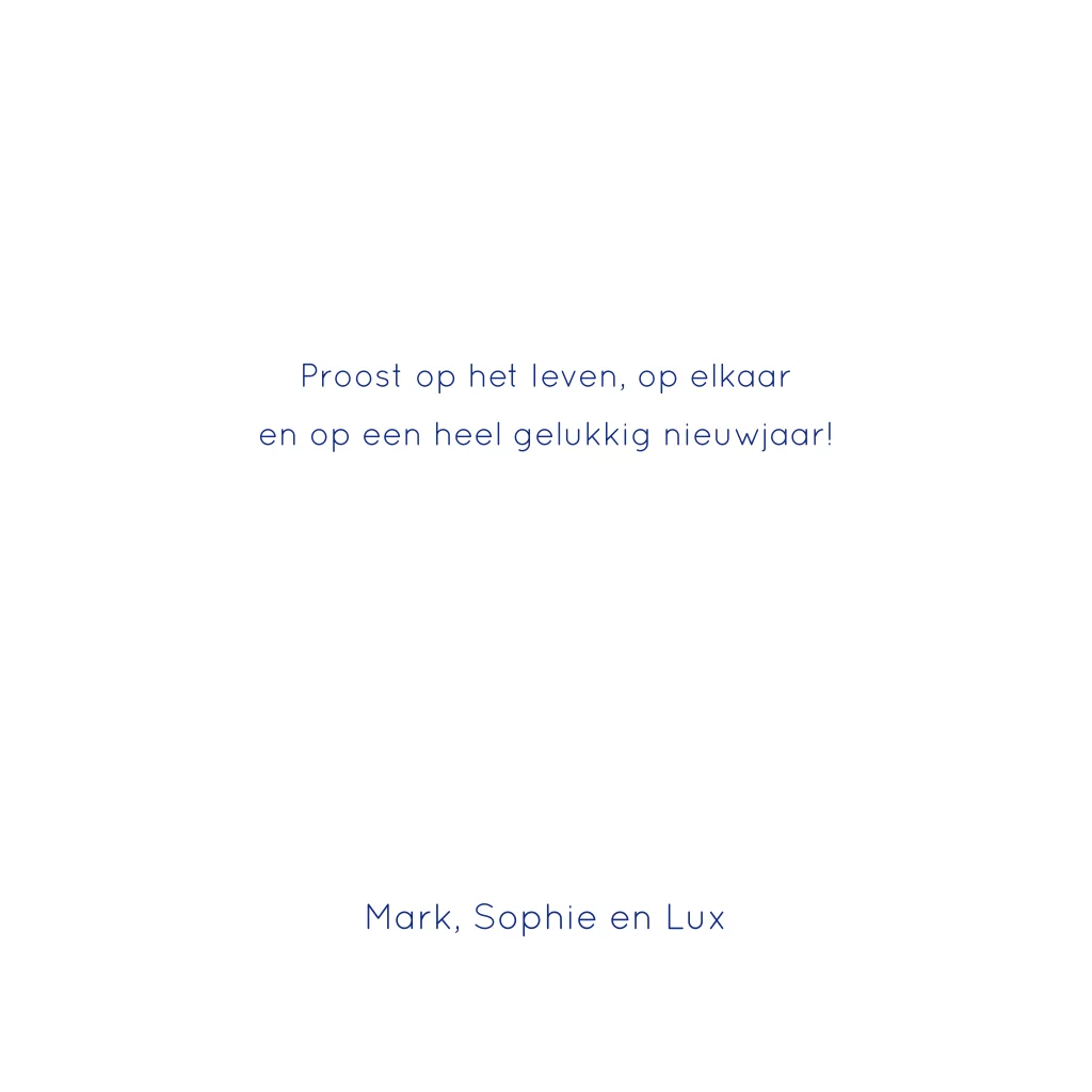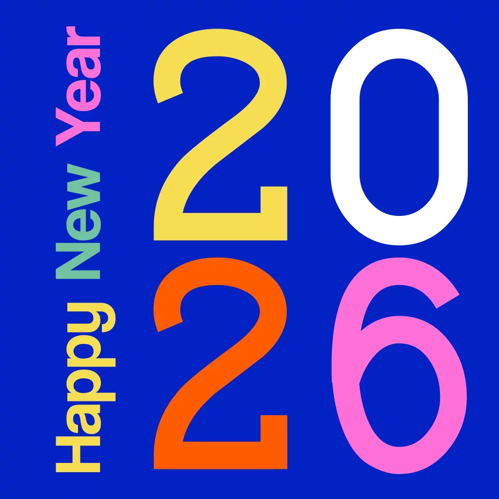 Mooie strakke kerstkaart. Op deze kleurrijke kerstkaart een blauwe achtergrond met het jaartal 2026 groot afgebeeld en de tekst Happy New Year. Wens hiermee je familie en vrienden alle goeds voor het nieuwe jaar.