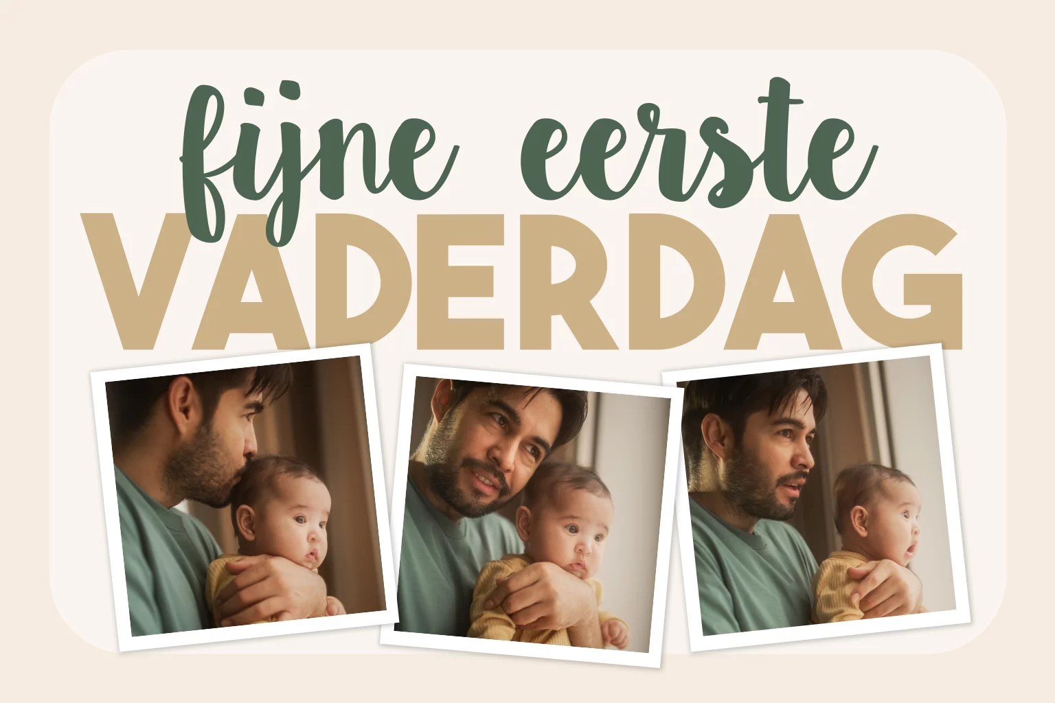 Fijne eerste Vaderdag! Een superlief kaartje om te geven aan je papa. Pas de foto's van de collage in de online editor aan voor de persoonlijke touch.