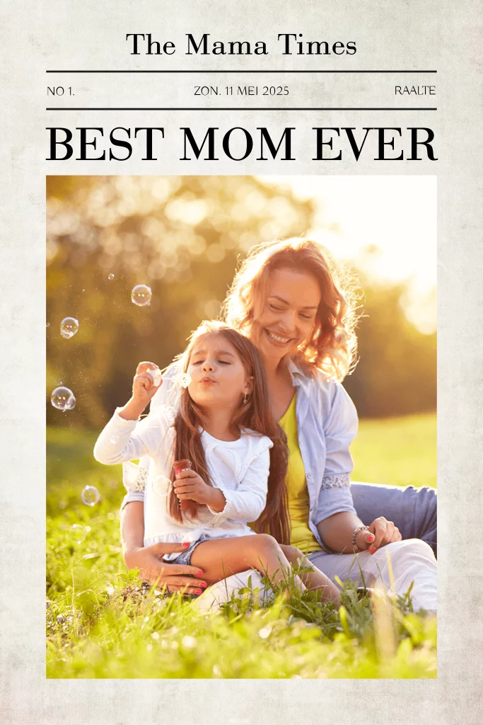 The Mama Times: best mom ever! Een originele wenskaart in de vorm van een krant voor Moederdag. Voeg een eigen foto toe in de online editor voor de persoonlijke touch. Fijne Moederdag!