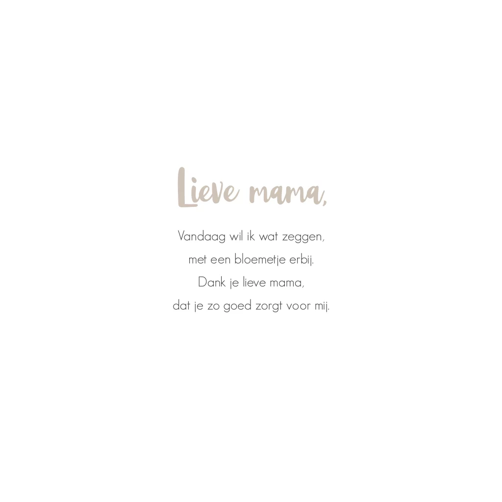 Verras de liefste mama op Moederdag met een mooie kaart en een lieve boodschap. Op deze moederdag wenskaart kun je 4 eigen foto's plaatsen.