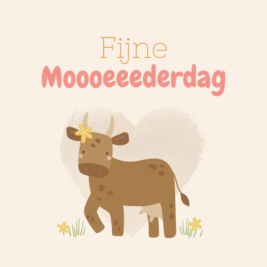 Deze wenskaart met koe is een vrolijke moederdagkaart. Helemaal geschikt voor als je moeder, schoonmoeder, bonusmoeder of oma die op een boerderij woont of koeien heeft. Wens ze een loeigoeie Moederdag!