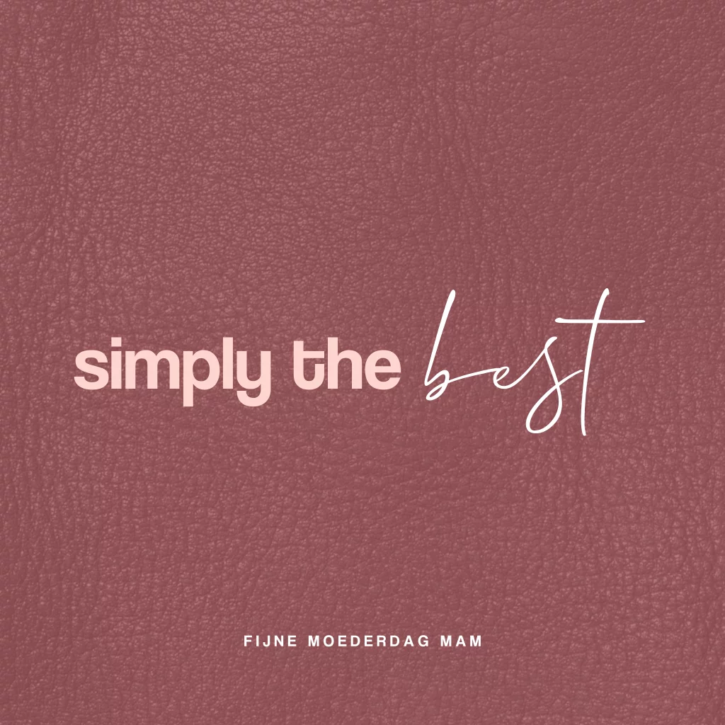 Laat weten dat jij jouw moeder gewoon de allerbeste vindt! Op deze moederdagkaart met hippe lederlook achtergrond staat de tekst: simply de best! Dat zegt genoeg toch! Welke moeder, schoonmoeder of bonusmoeder zet jij met deze kaart in het zonnetje?