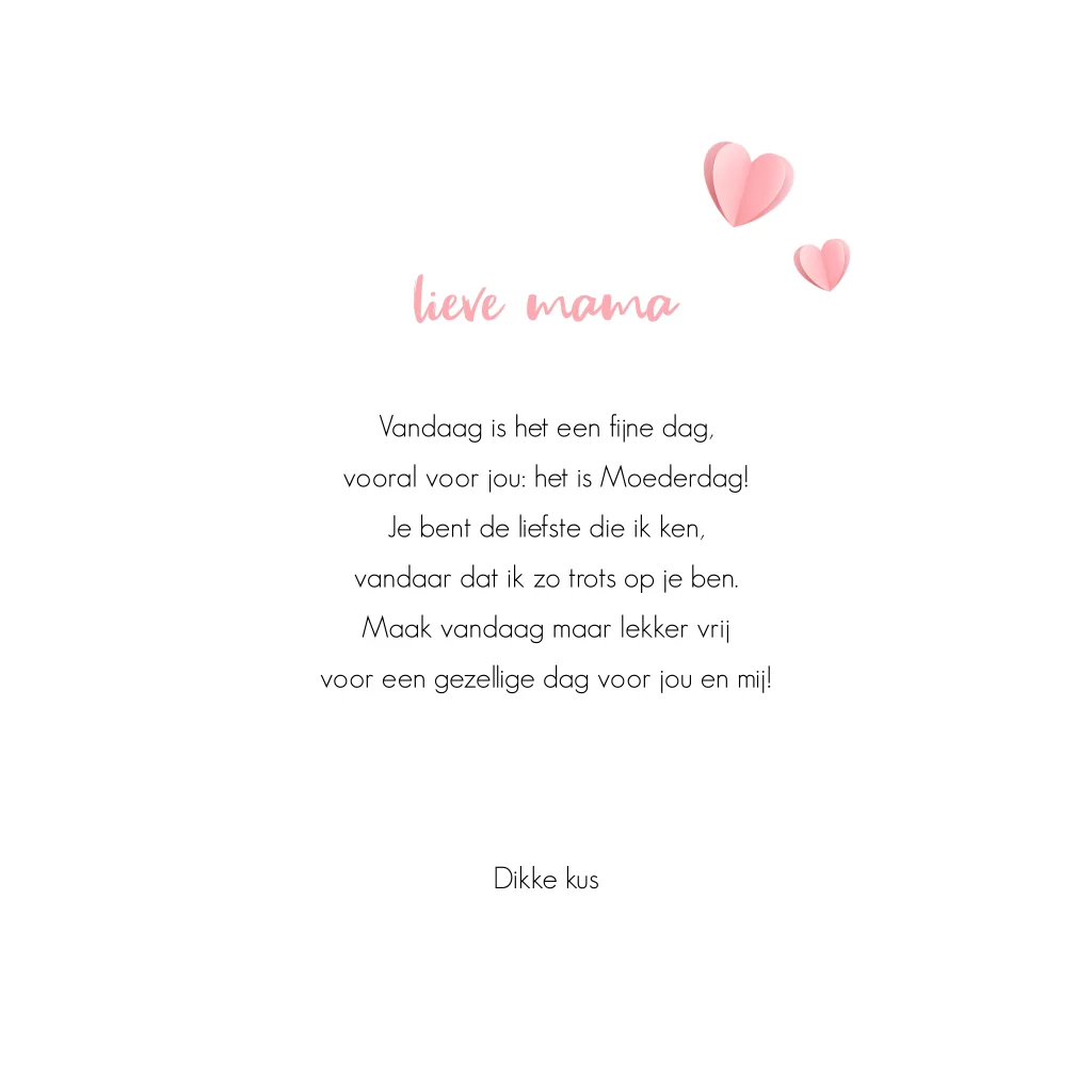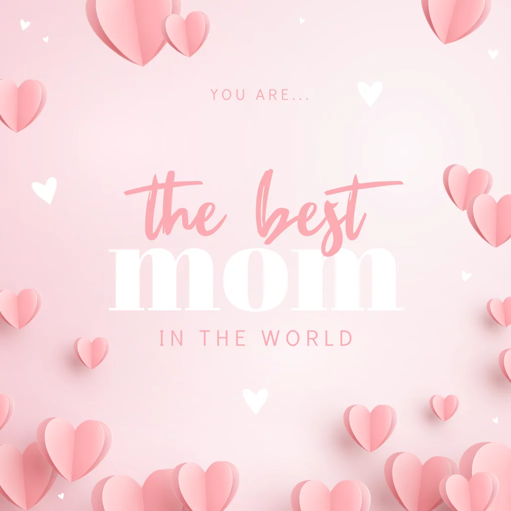Verstuur een liefdevolle kaart voor Moederdag om jouw moeder te laten weten dat ze de allerbeste mama van de wereld is. Op deze wenskaart staan veel roze hartjes en de tekst: You are the best mom in the world.