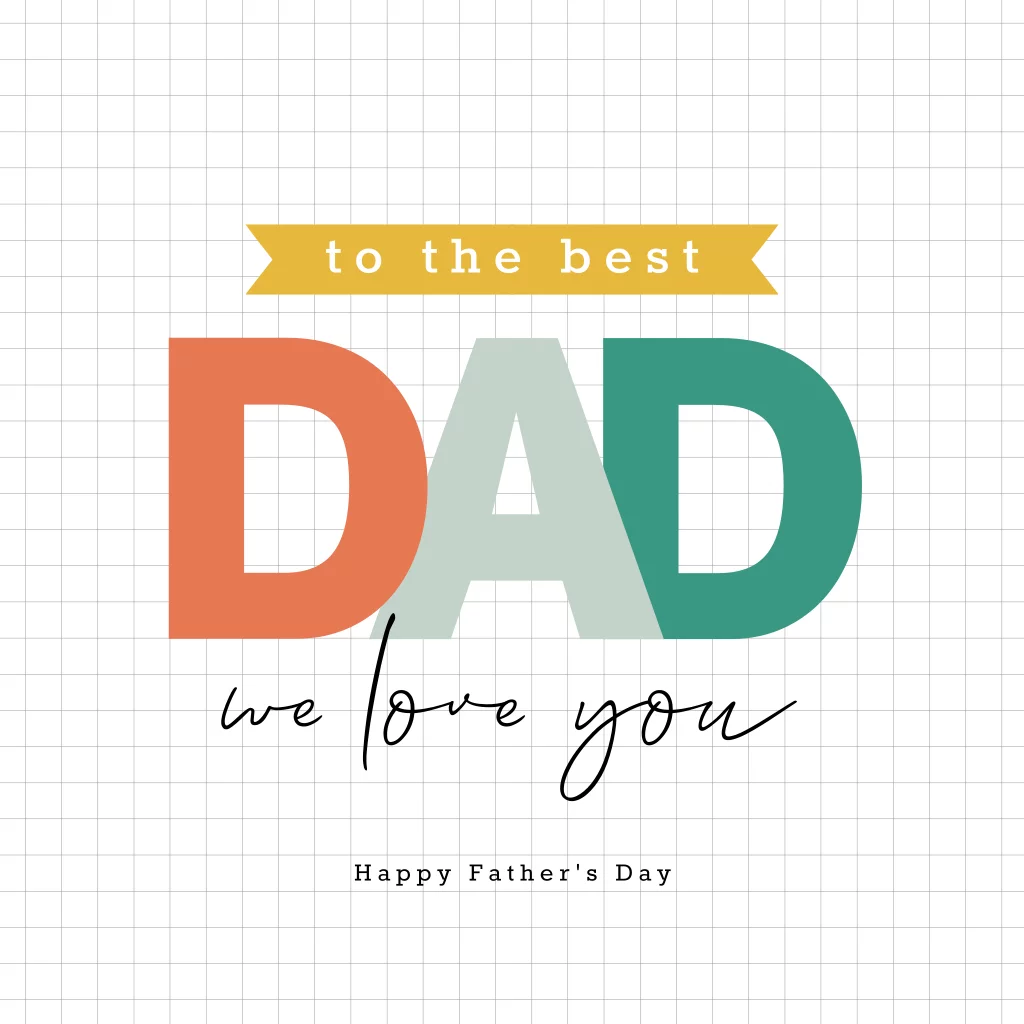 Typografische moderne wenskaart to the best dad. Op deze vaderdagkaart een ruitjespatroon met kleurrijke letters. De perfecte kaart voor Vaderdag!