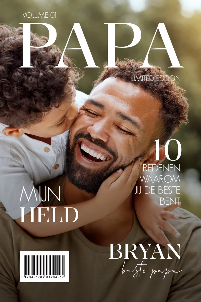 Een superleuke wenskaart in de vorm van een magazine voor Vaderdag. Jouw vader verdient toch ook een mooie kaart! Pas de foto in de online editor aan voor de persoonlijke touch en laat je vader met deze kaart weten waarom hij de beste is.