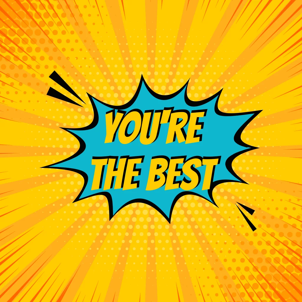 Wenskaart voor Vaderdag met popart thema en tekstballon: "You're the best!" Voor alle vaders: een geweldige wenskaart met een comic book look. Deze kaart is leuk, kleurrijk en vooral een echte blikvanger. Vul de kaart aan met je eigen tekst en maak er iets unieks van!