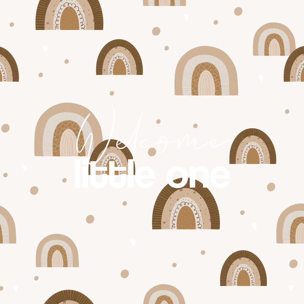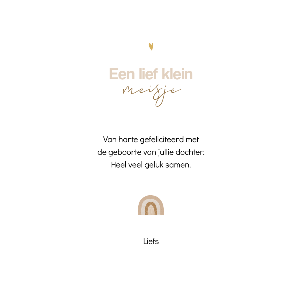 Op deze vrolijke felicitatiekaart voor een meisje een patroon van regenbogen met stippen en hartjes. De tekst 'Welcome little one' en de hartjes worden gedrukt in echt goudfolie. Dit geeft een luxe uitstraling aan de wenskaart. De perfecte felicitatiekaart voor de geboorte van een dochter!
