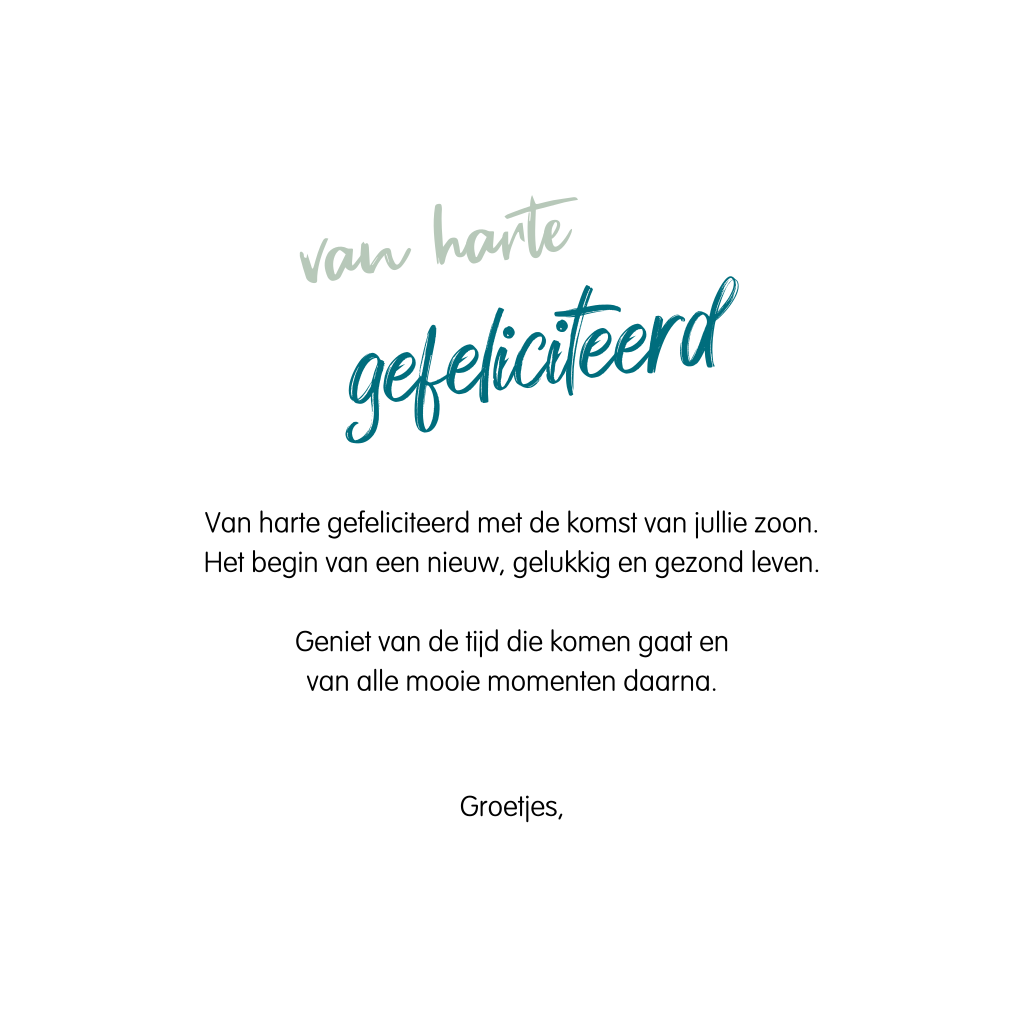 "Hoera! een zoon." Superleuk dieren felicitatiekaartje voor de geboorte van een zoon. Op deze wenskaart een olifant in een glooiend landschap met bladeren in zachte aquarel groen tinten.
