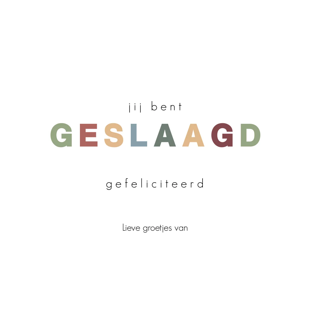 Geslaagd? Wat een topper! Rustig, maar vrolijk kaartje om iemand te feliciteren met zijn of haar diploma of andere topprestatie.