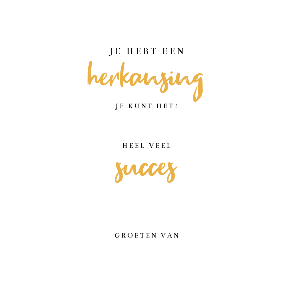 Helaas gezakt voor een examen? Wens diegene veel succes met de herkansing door middel van dit kaartje met opbeurende en aanmoedigende tekst.