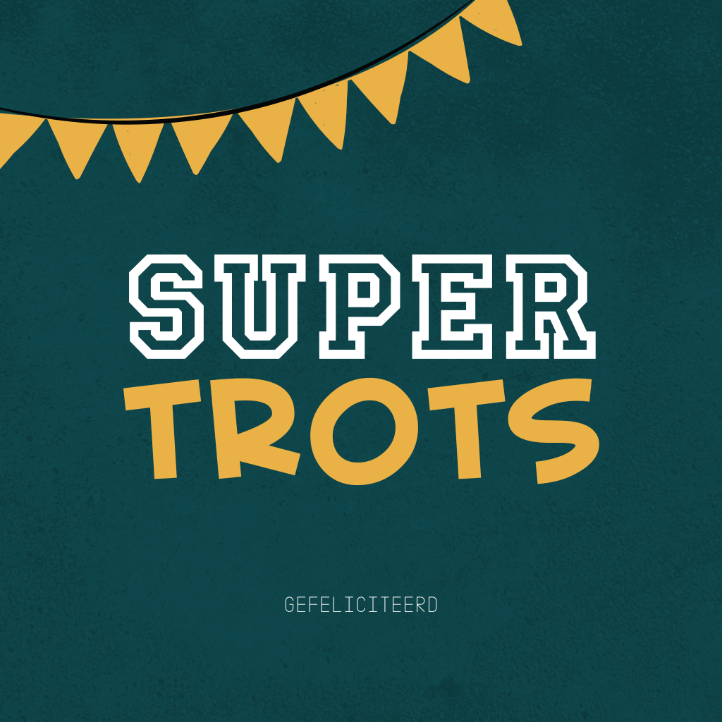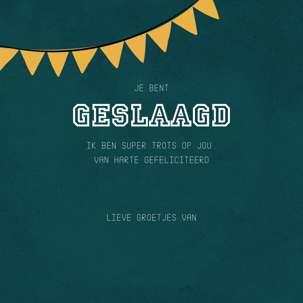 Stoere wenskaart geslaagd met vlaggetjes. Een felicitatiekaart voor iemand die zijn of haar examen gehaald heeft. Laat met deze stoere wenskaart weten dat je super trots bent.
