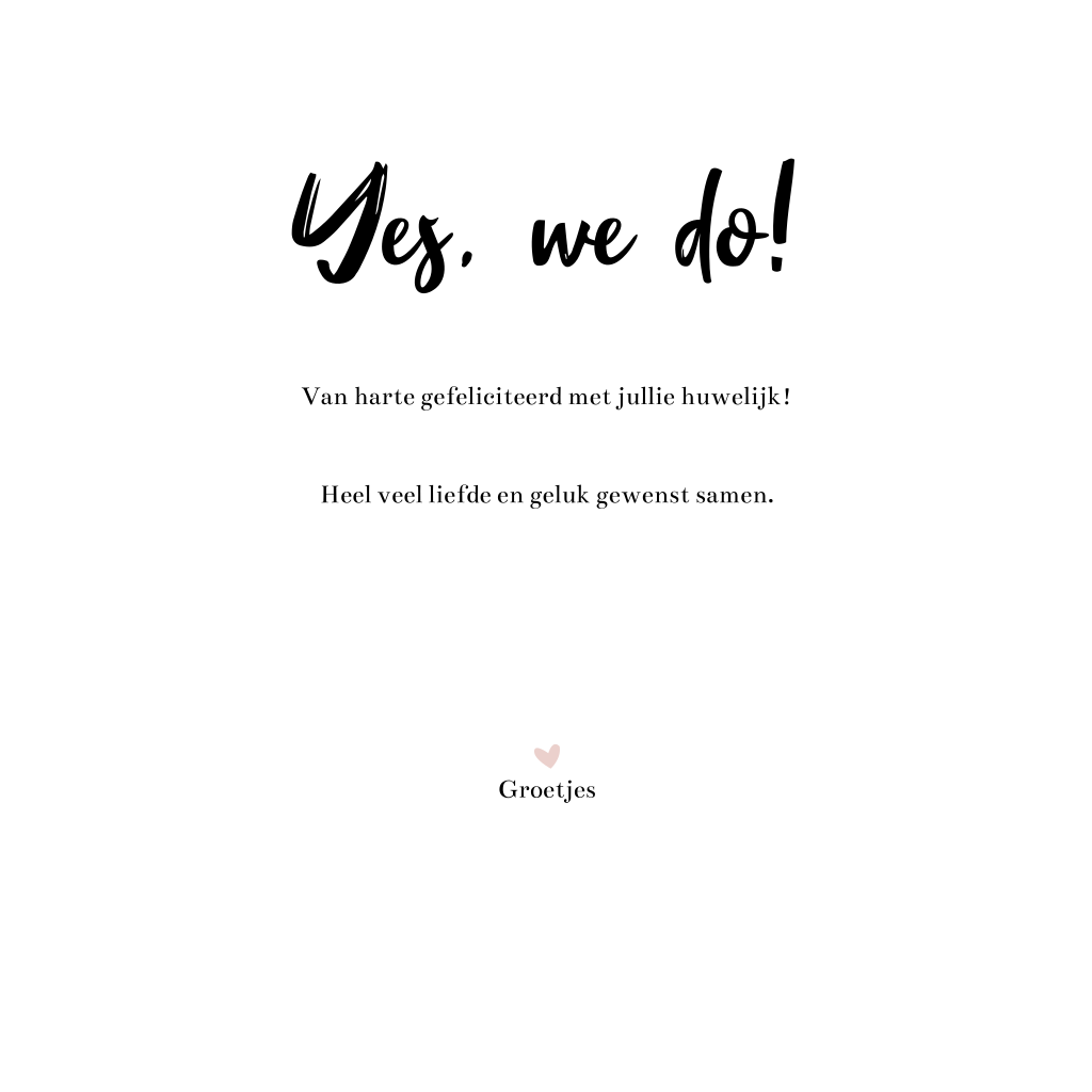 Happy I do day! Leuke kaart om een bruidspaar mee te feliciteren. Op deze kaart je wens voor het getrouwde stel in grote, zwarte letters op een witte achtergrond met een lief hartje erbij.