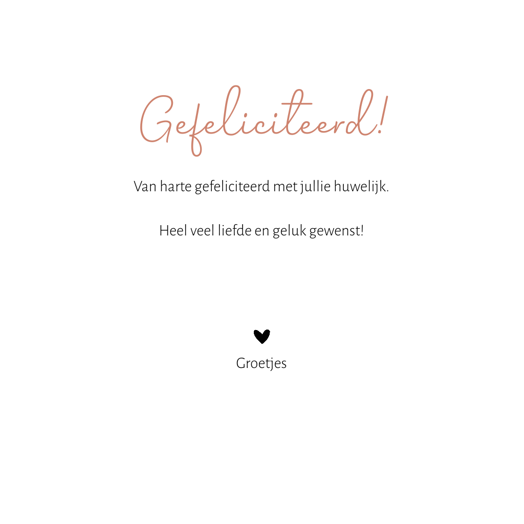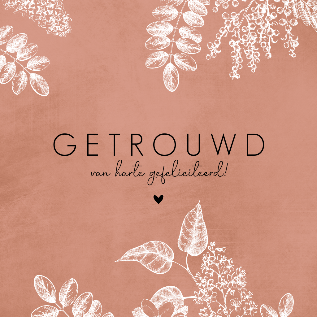 Feliciteer het bruidspaar en wens ze veel geluk met deze mooie wenskaart in trendy terra kleur met getekende witte bloemen.