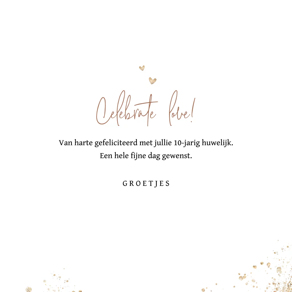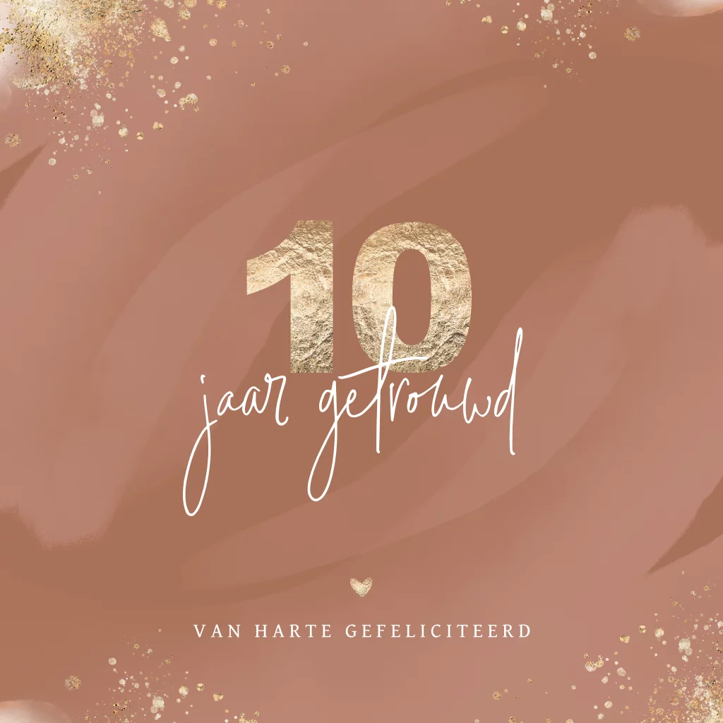 Wenskaart 10-jarig huwelijks jubileum met goudlook spetters
