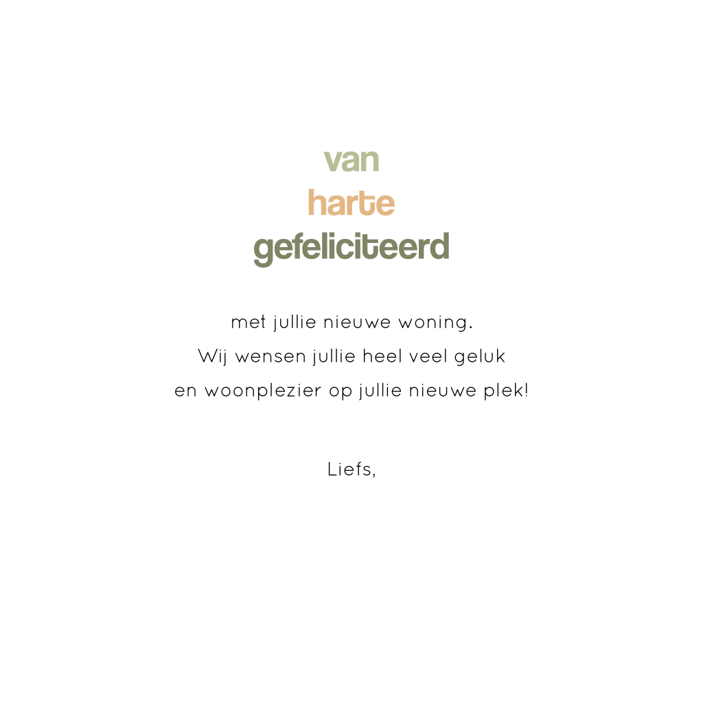 Voeg je eigen persoonlijke groet toe op de binnenzijde om te feliciteren met de nieuwe woning.