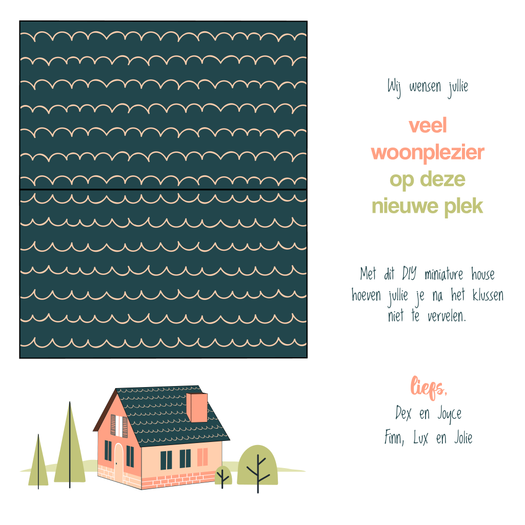 Feliciteer iemand die gaat verhuizen met deze hippe felicitatiekaart met DIY miniatuur huis om zelf in elkaar te zetten. Met dit DIY miniature house hoeven ze zich na het klussen niet te vervelen. Stuur dit naar iemand die wel van een grapje houdt, creatief is en wens ze hiermee heel veel woonplezier.
