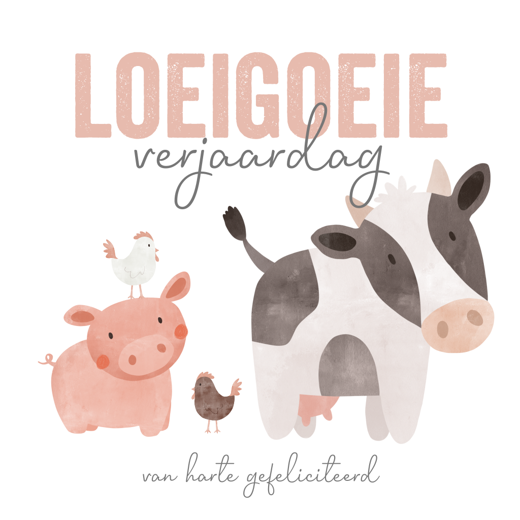 "Loeigoeie" verjaardagskaart met boerderij dieren