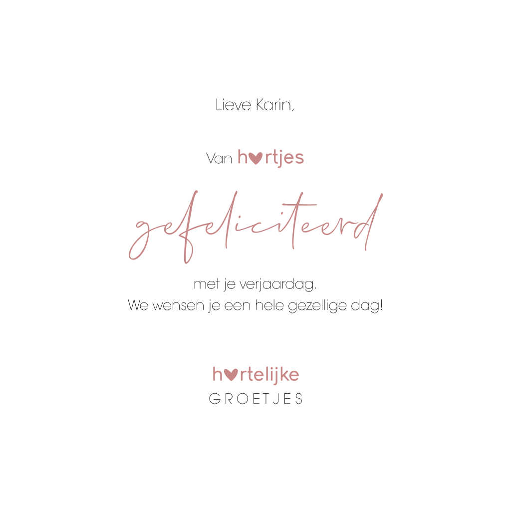"Van hartjes gefeliciteerd". Op deze felicitatiekaart meerdere hartjes voor een roze achtergrond. Deze verjaardagskaart voor iemand waar je heel veel van houdt, is voorzien van roséfolie. Dit geeft de kaart een luxe uitstraling! Leuk om te geven en helemaal geweldig om te ontvangen.
