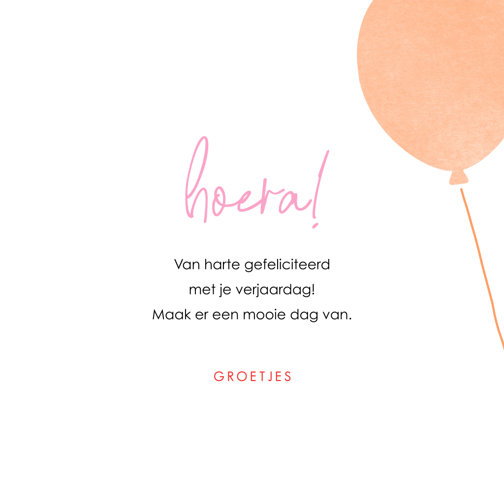Vrolijke verjaardagskaart met kleurrijke ballonnen. Vul de leeftijd van de jarige in en voeg een leuke foto toe.