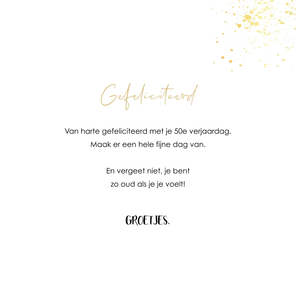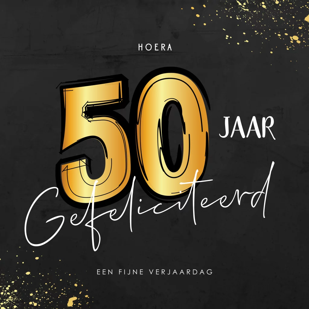 Verjaardagskaart 50 jaar met goud en krijtbord