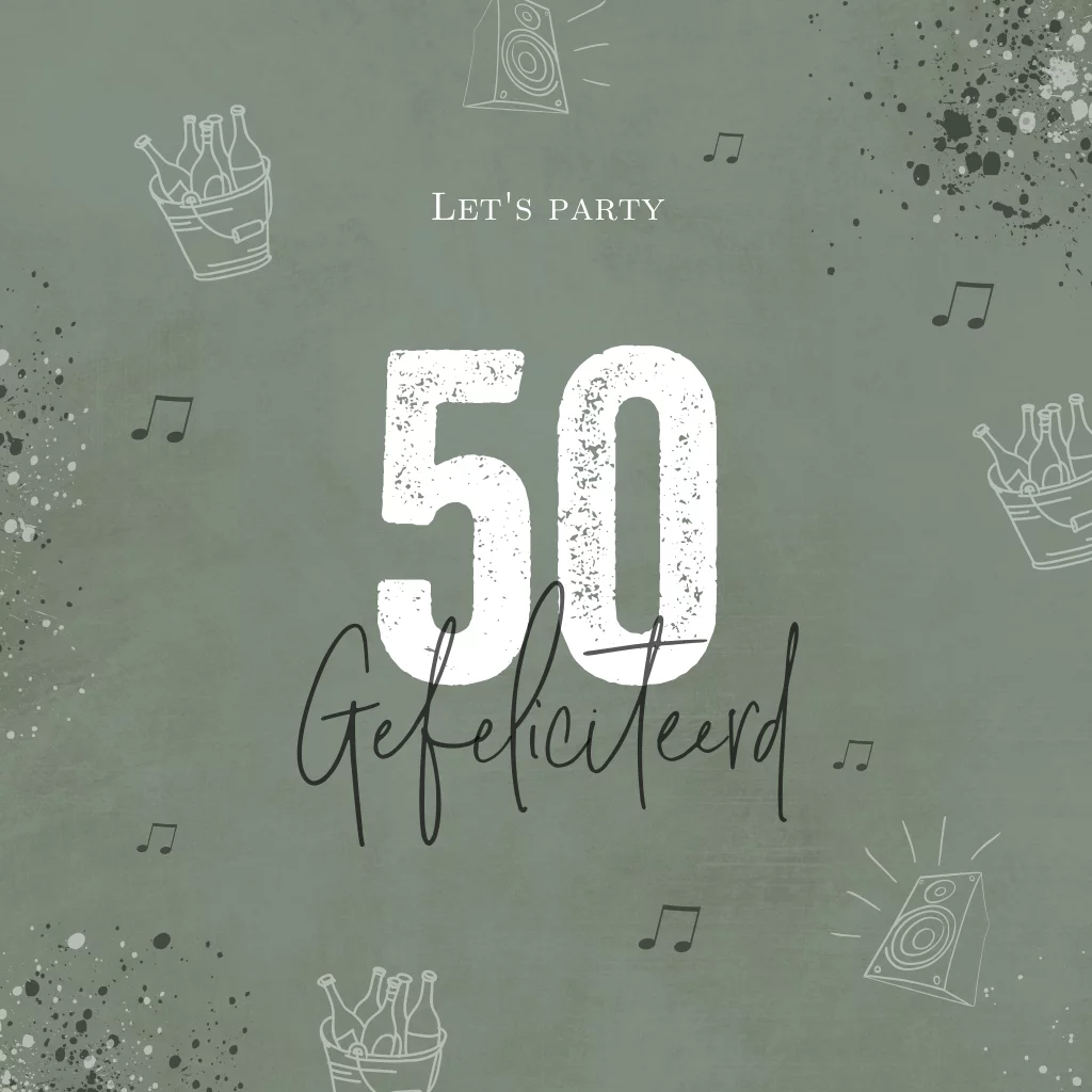 Stoere verjaardagskaart 50 jaar met feest elementen