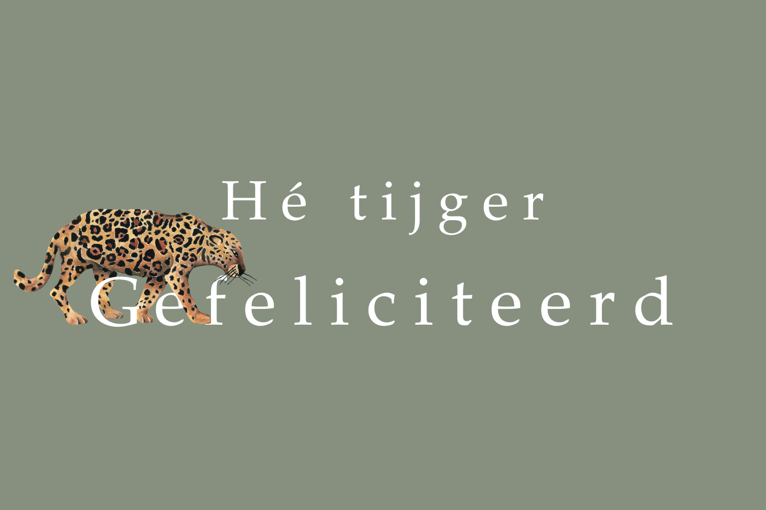 Feliciteer de jarige met dit stoere kaartje. Op deze basic kaart in legergroene kleur een tijger met de tekst 'Hé tijger Gefeliciteerd'.