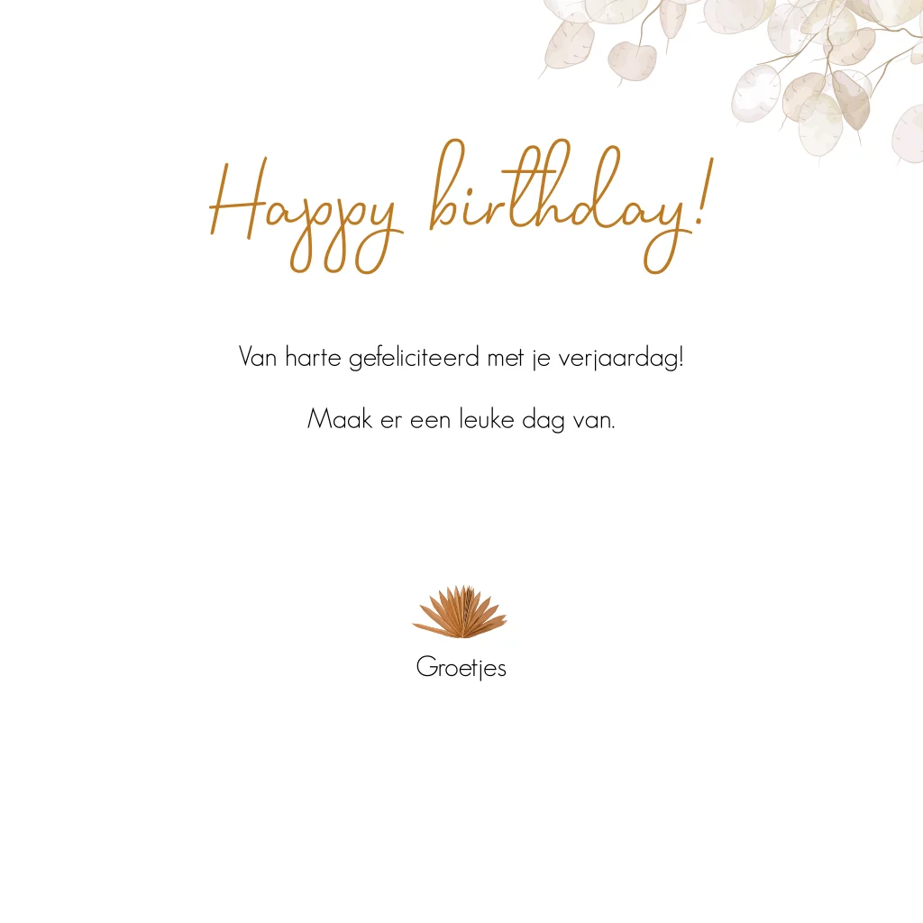 Happy birthday verjaardagskaart met hippe droogbloemen