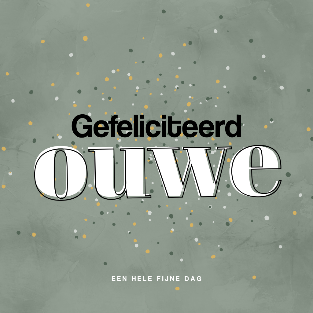 "Gefeliciteerd ouwe". Stuur deze felicitatiekaart naar de jarige die alwéér een jaartje ouder is geworden. Op deze wenskaart confetti voor een stoere, groene betonlook achtergrond.