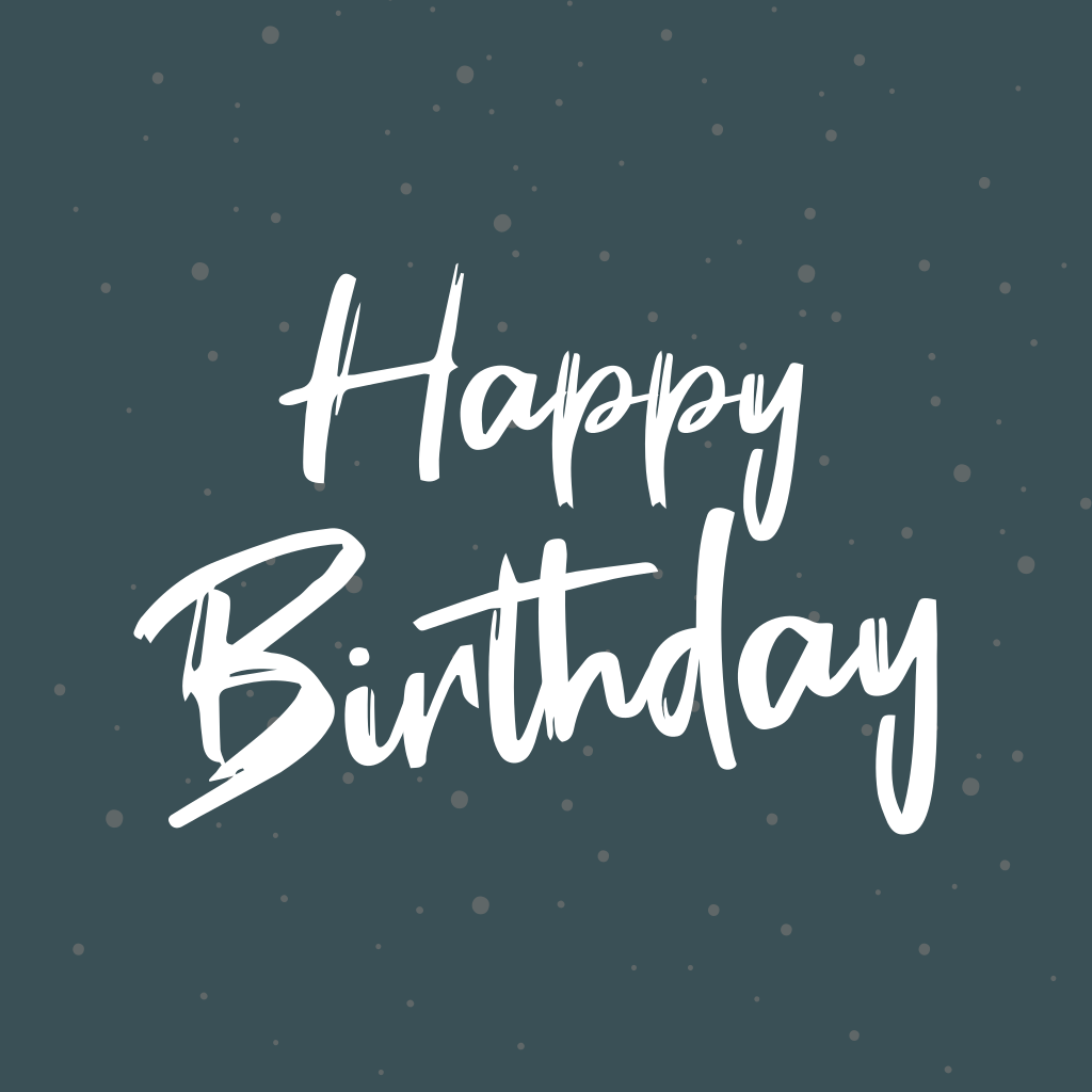 Stijlvolle, luxe felicitatiekaart voor een man of vrouw met de tekst "Happy Birthday" in roségoudfolie voor een stippen achtergrond.