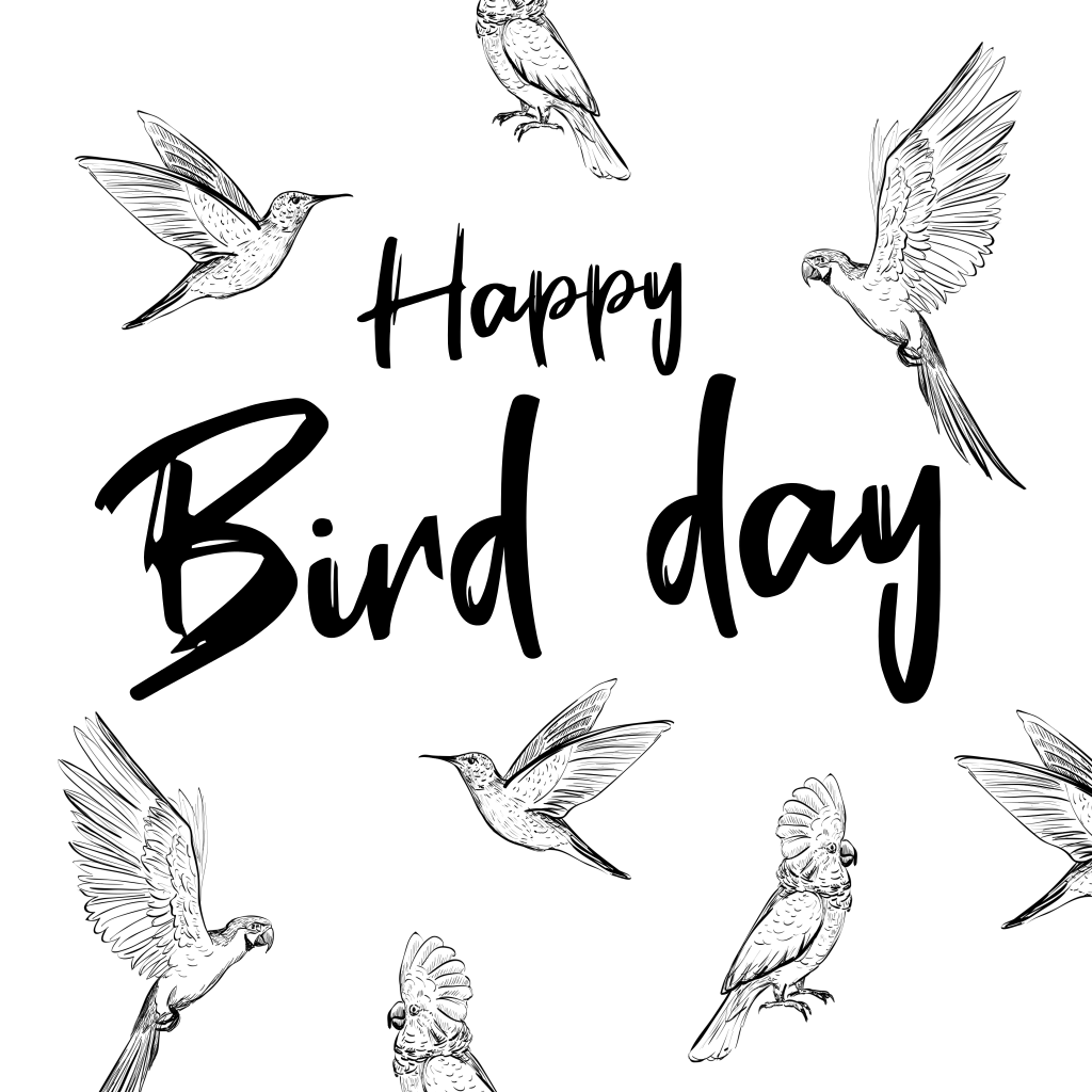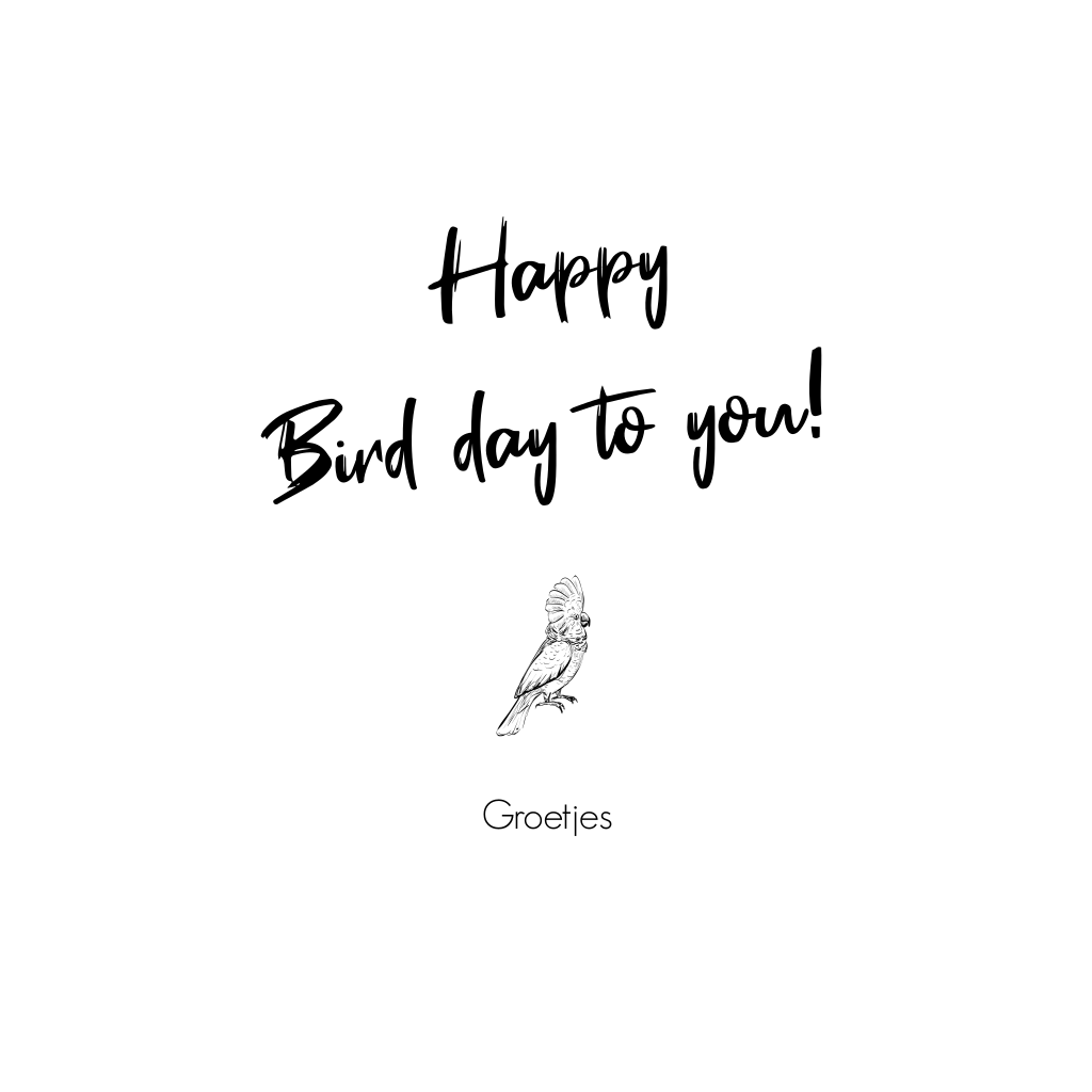 Wens het jarige feestbeest een 'Happy Bird day' met deze leuke zwart-wit verjaardagskaart met verschillende soorten vogels.