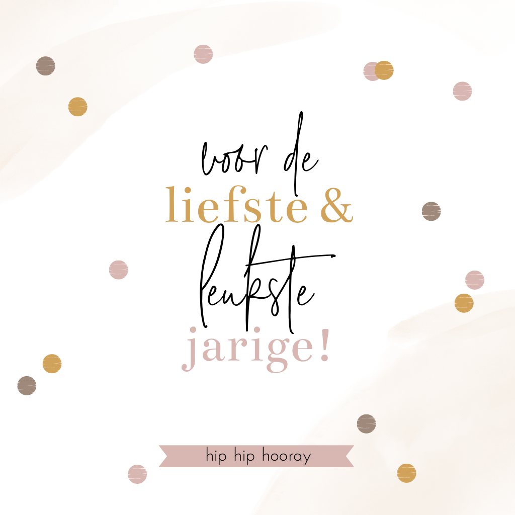 Wens de jarige een fijne verjaardag met deze felicitatie kaart met de tekst " Voor de liefste en leukste jarige." Op de achtergrond watercolor vegen en vrolijke confetti stippen. Voeg je persoonlijke verjaardagswens toe op de binnenzijde.