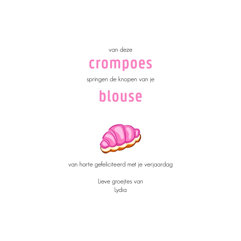 Knalroze grappige wenskaart voor een verjaardag met de trend van dit moment: de crompoes! Op de verjaardagskaart staat de tekst: 'Who needs cake? When there's crompoes' met een crompoes met kaarsje erop. Pas de kleuren, teksten en lettertypes eenvoudig aan in de editor.
