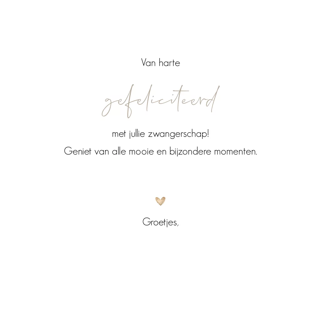 Superleuk felicitatiekaartje met dierenprint en kleine hartjes. "Whoohoo zwanger" staat in een mooie combinatie van sierlijke en strakke letters. Leuke kaart om de zwangere mee te verrassen!