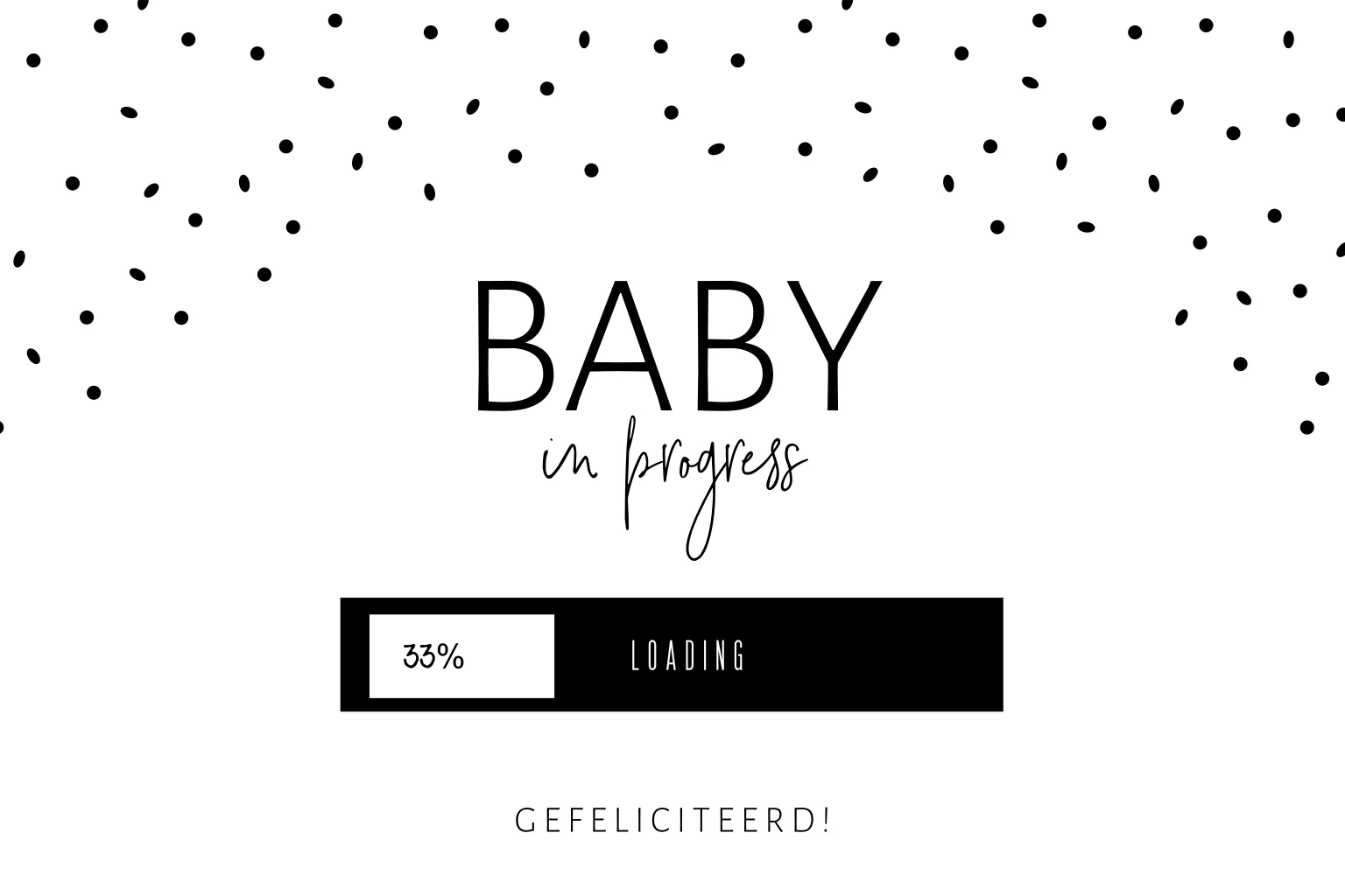 Baby in progress! Feliciteer degene die in blijde verwachting is, met deze leuke kaart. Deze kaart in zwart-wit heeft een voortgangsbalk met percentage.