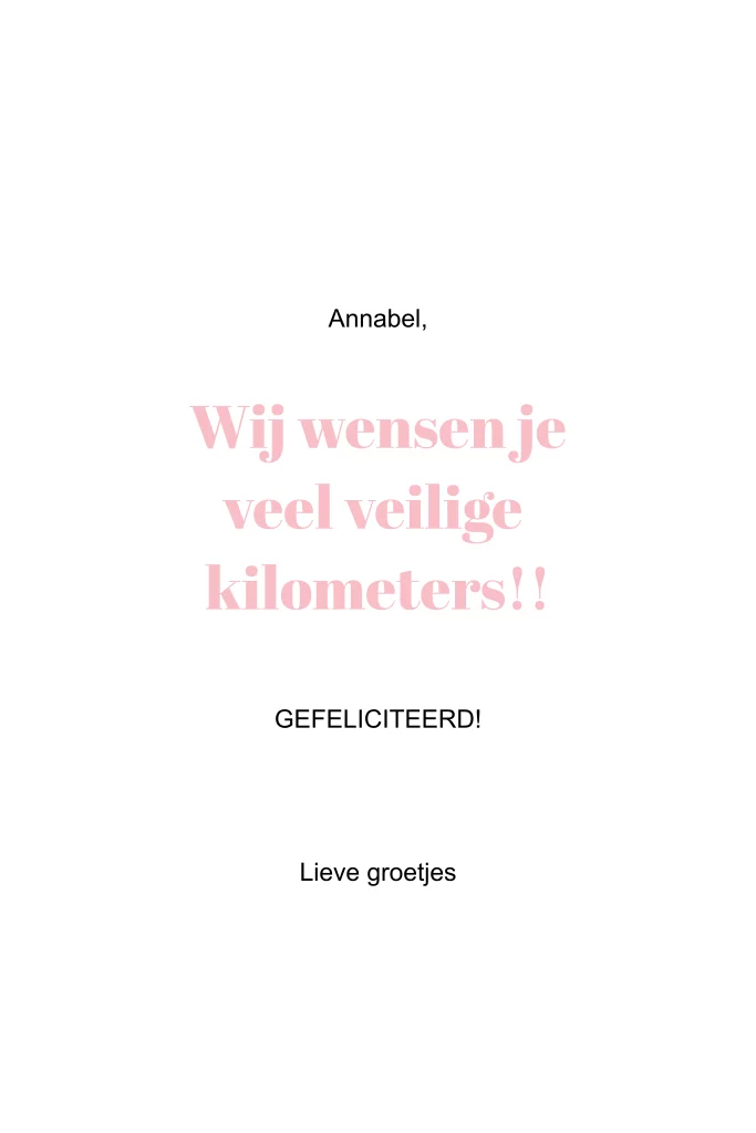 Ken jij een vrouw die haar rijbewijs heeft gehaald? Stuur dan deze leuke kaart! Op deze kaart zie je een insta post staan met een roze autootje, rozen en een cadeautje. Een leuke roze insta post om een dame te feliciteren met haar rijbewijs!