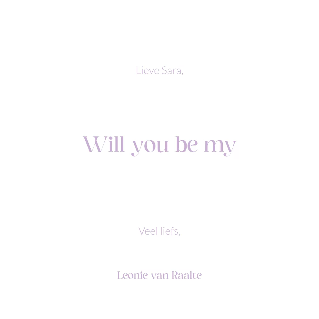 Op zoek naar de perfecte manier om je getuige te vragen? Met deze prachtige wenskaart met goudfolie maak je gegarandeerd indruk. Foliedruk zorgt voor een extra vleugje elegantie. Deze wenskaart heeft op de achtergrond een strepenpatroon met paarse en roze kleurtinten. De tekst 'My best day includes you' staat in een mooi golvend organisch kader. De letter 'O' in 'you' heeft de vorm van een trouwring. Pas deze wenskaart naar eigen wens aan in de online editor en verras de ontvanger van deze wenskaart met een speciale boodschap!