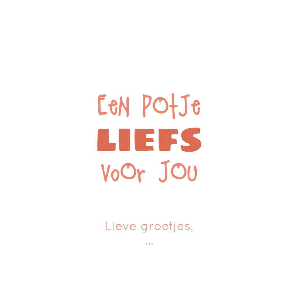 Deze lieve kaart is de perfecte manier om aan iemand te laten weten dat je aan diegene denkt. Op deze kaart zie je een glazen potje gevuld met hartjes en bloemetjes. Stuur iemand een potje liefs of wens haar veel beterschap.