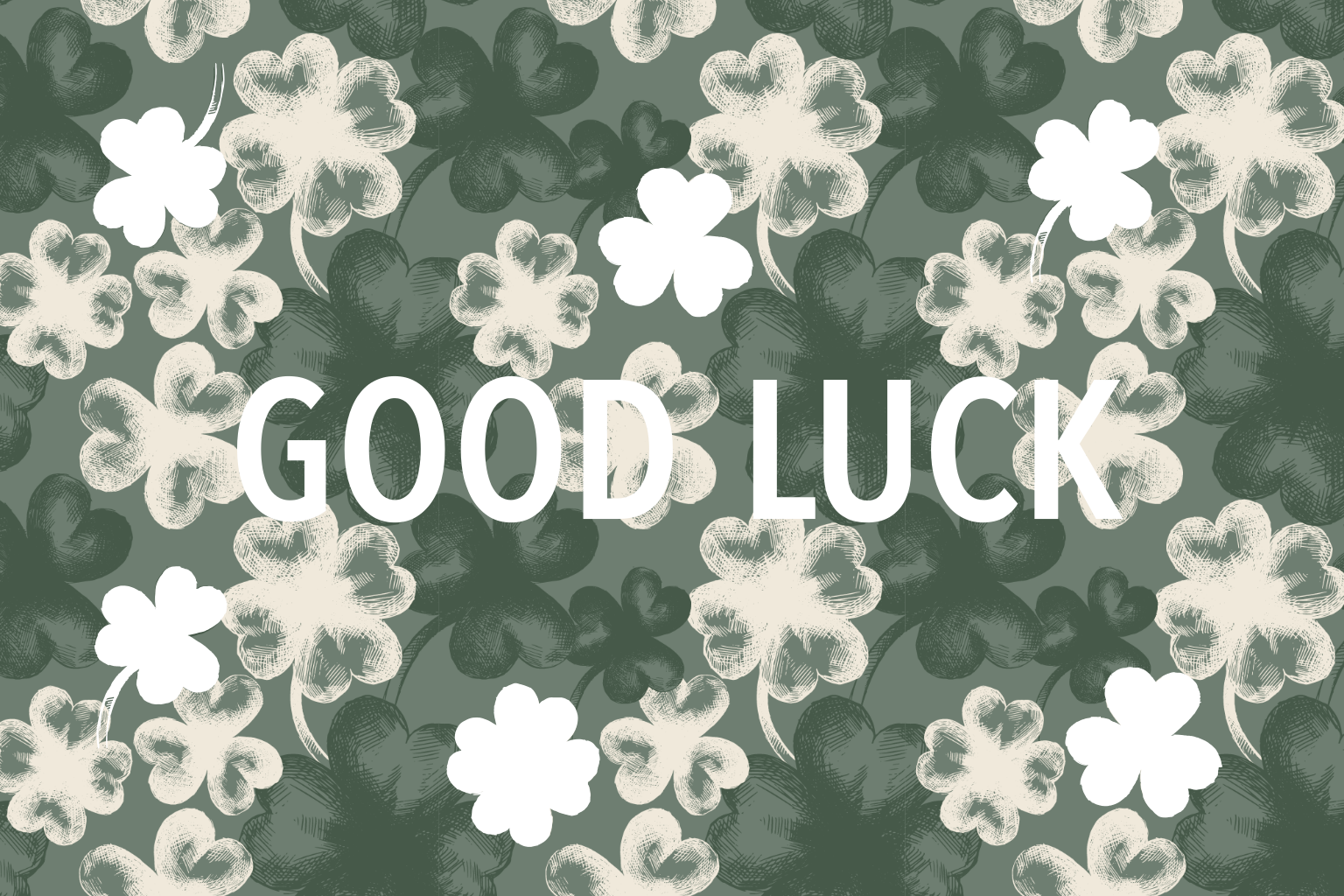 Luxe wenskaart met goudfolie om iemand veel succes, kracht en moed toe te wensen. Bijvoorbeeld voorafgaand aan een behandeling, operatie, sollicatiegesprek of examen. De tekst "Good luck" en de goudkleurige klavertjes worden gedrukt in écht goudfolie. Folie heeft een mooie glans en geeft de kaart een exclusieve uitstraling.