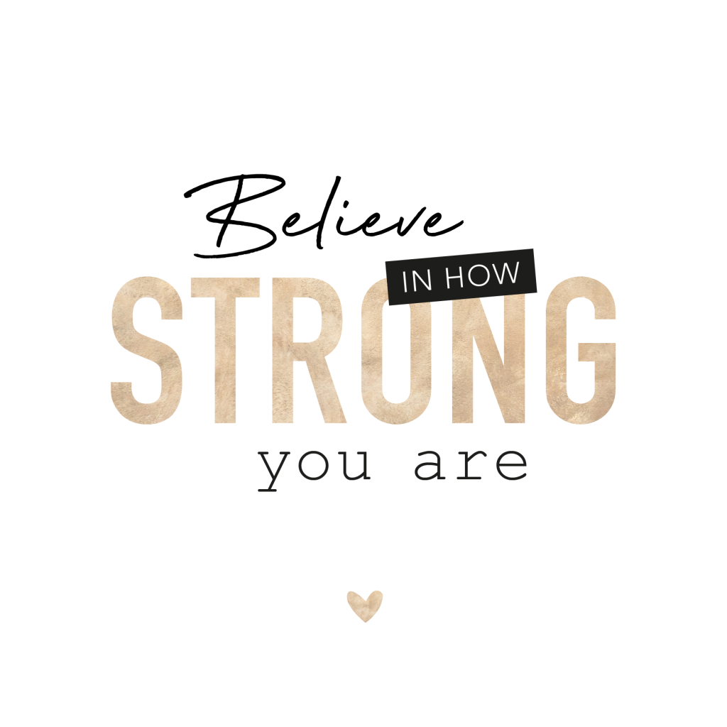 Steek iemand een hart onder de riem die ziek is of door een moeilijke periode heen gaat. Op deze sterkte kaart staat de tekst: Believe in how strong you are.