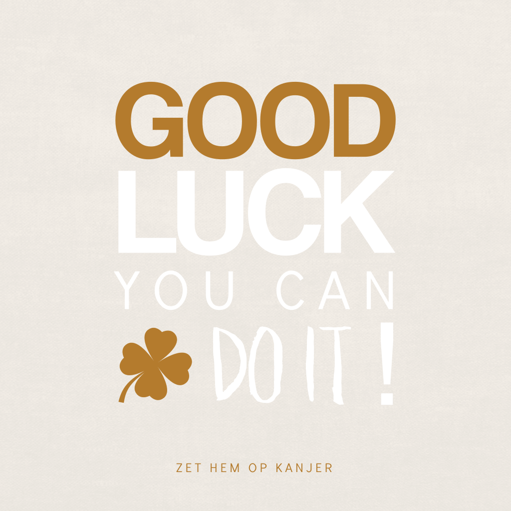Wenskaart om iemand succes te wensen, in neutrale kleuren en met mooie typografie. Met deze kaart kun je iemand motiveren en vertrouwen geven in zijn of haar kunnen met de tekst: Good luck, you can do it en een klavertje vier. Op de binnenzijde kun je een persoonlijke tekst toevoegen.
