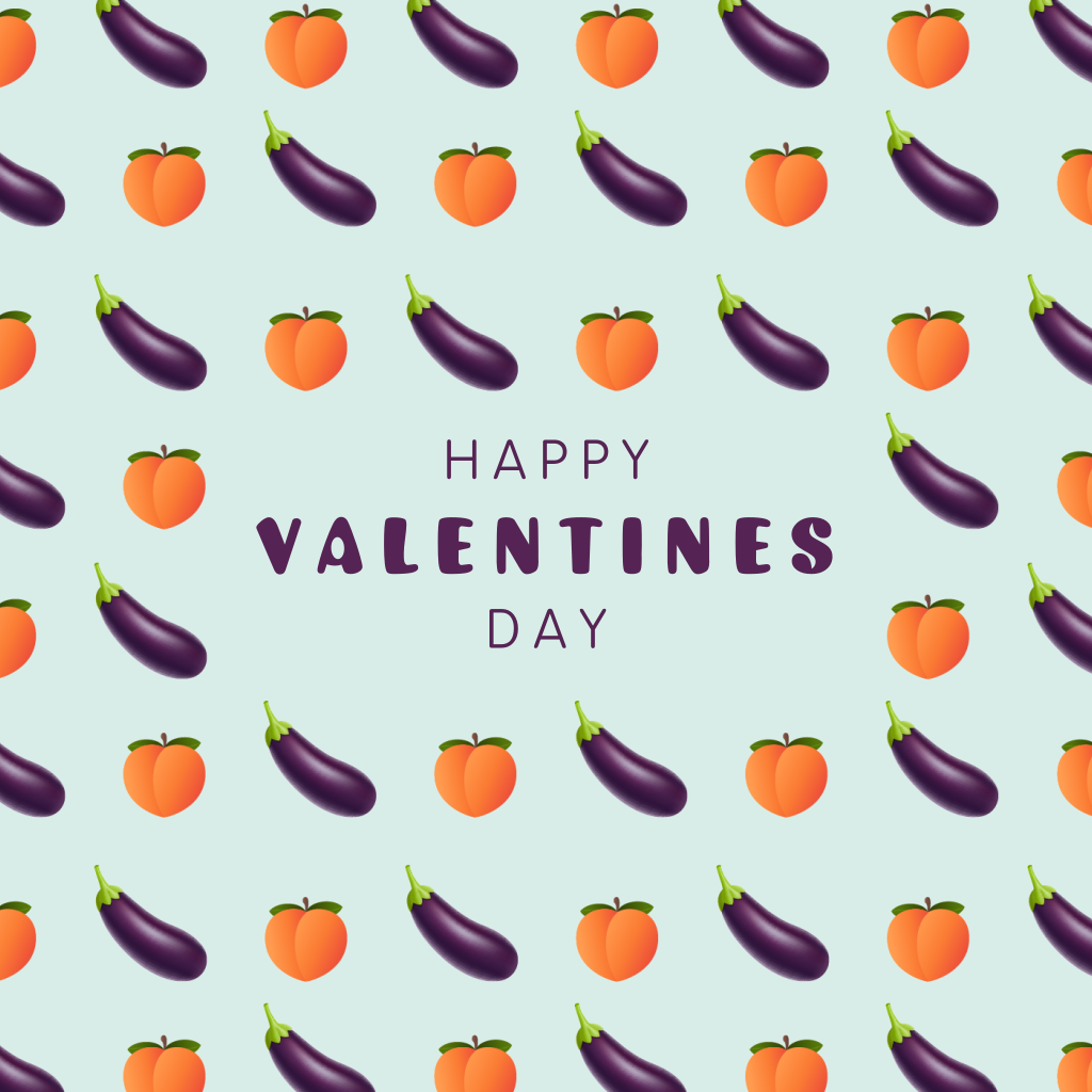 Wil je deze Valentijnsdag iemand bijzonder gelukkig maken? Dat doe je met deze grappige ludieke valentijnskaart met emoticons van een perzik en aubergine.