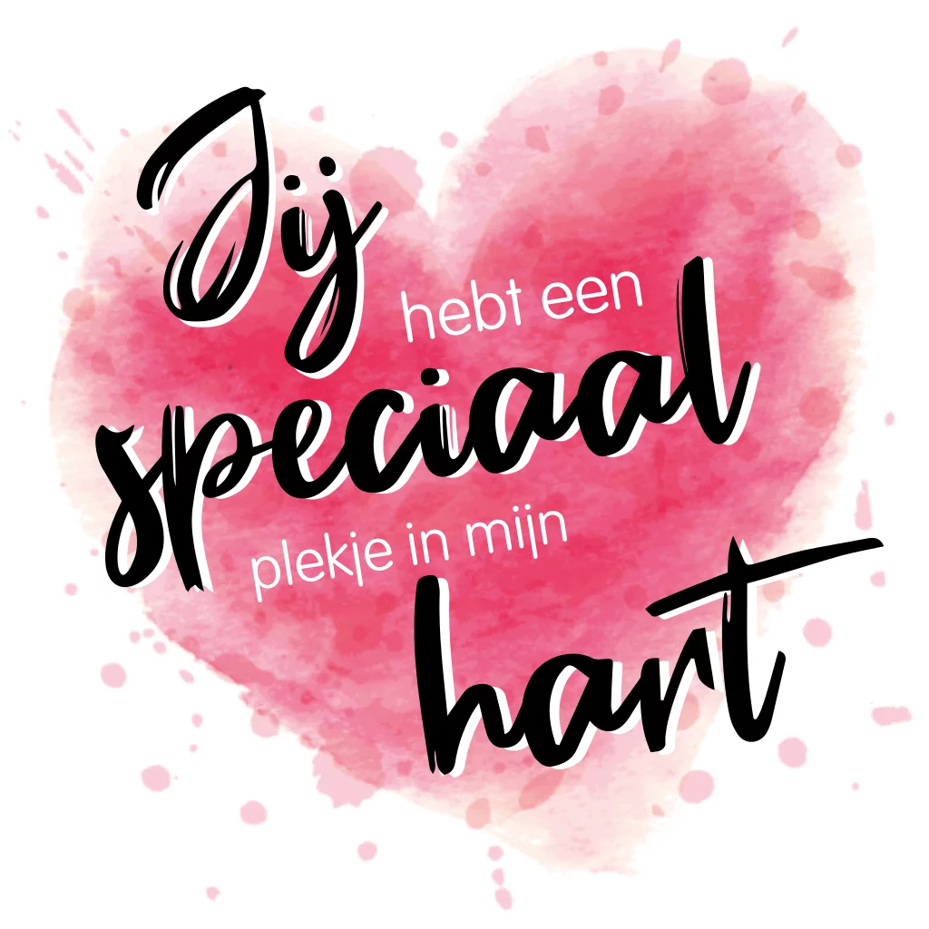 Wie heeft er een speciaal plekje in jouw hart? Stuur dan deze Valentijnskaart met lieve tekst op een mooi aquarel splash hart. Voor een stille aanbidder of gewoon iemand waar je heel veel om geeft! Voeg je eigen boodschap toe op de binnenzijde.