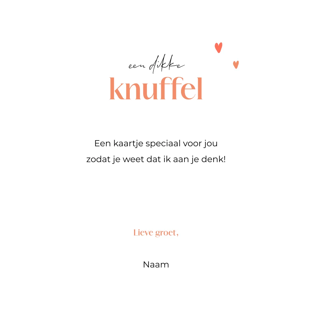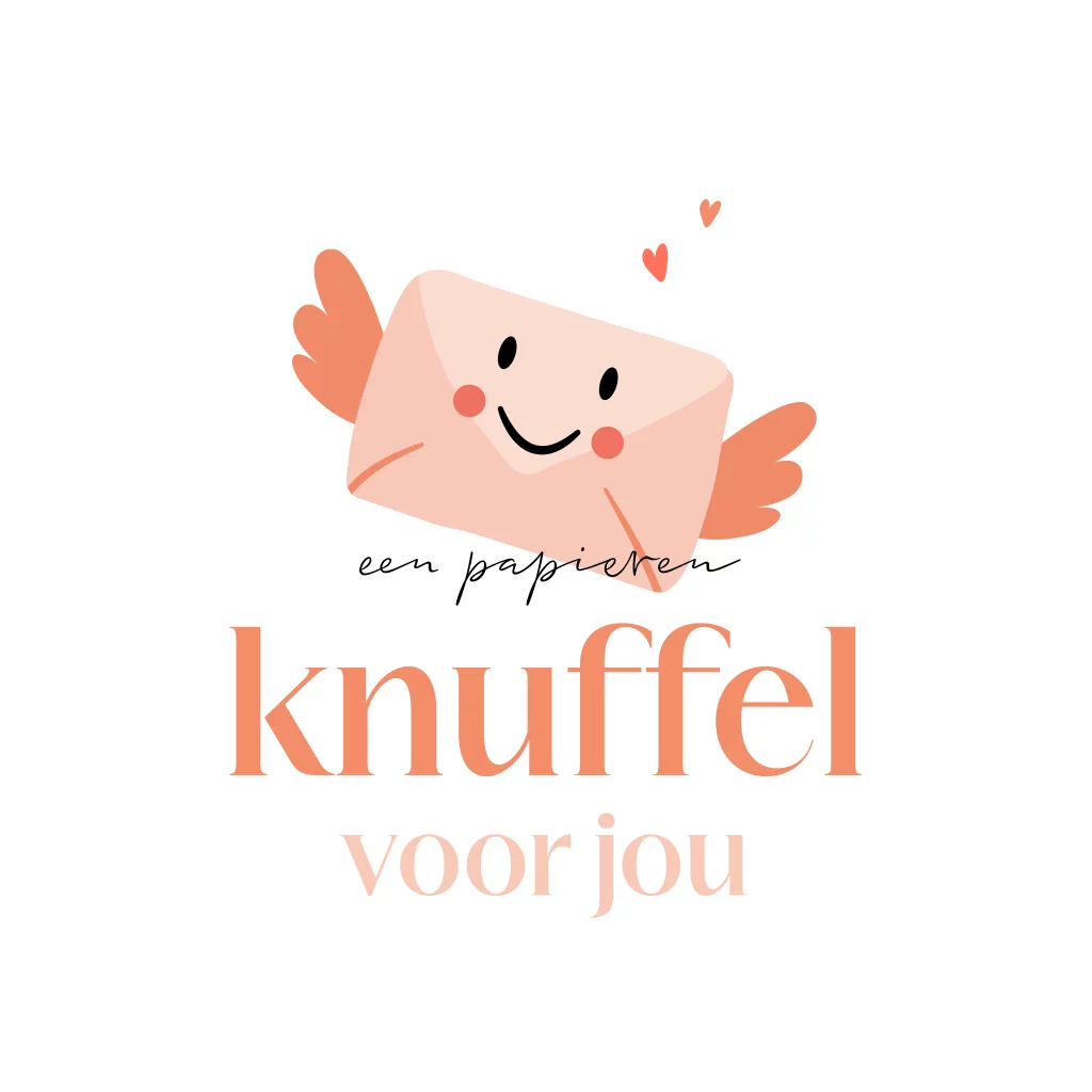 Wenskaart met een lieve illustratie van een envelop met hartjes en de tekst 'een papieren knuffel voor jou'. Laat met deze wenskaart weten dat je aan iemand denkt en hem of haar een hart onder de riem wilt steken. Deze kaart is ontworpen voor de Stichting Long Covid maar is uiteraard ook geschikt voor algemeen gebruik om iemand blij te maken met een persoonlijk kaartje.