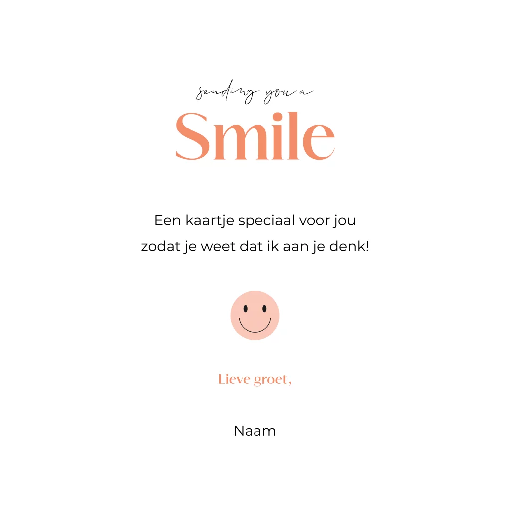 Ken jij iemand in jouw naaste omgeving met Long COVID? Stuur dan een kaartje om deze persoon weer even een smile op zijn gezicht te geven en te weten dat er aan hem of haar wordt gedacht. Deze wenskaart is voorzien van kleurrijke lach poppetjes met de tekst 'sending you a smile'. Deze kaart is uiteraard ook geschikt voor algemeen gebruik om iemand blij te maken met een persoonlijk kaartje.