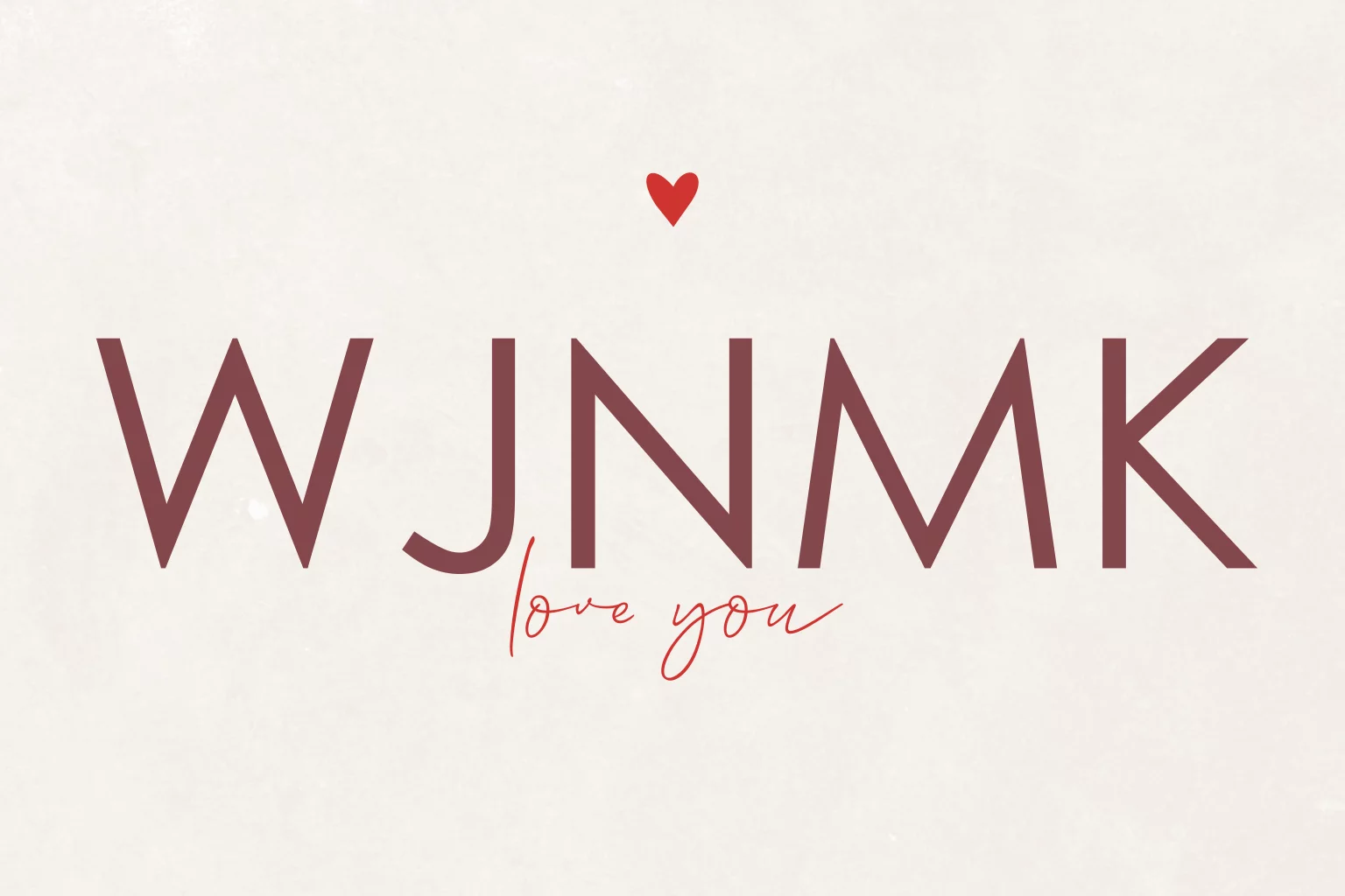 Hippe Valentijnskaart met een basic design en trendy liefdes codewoorden: WJNMK (wil je nooit meer kwijt)