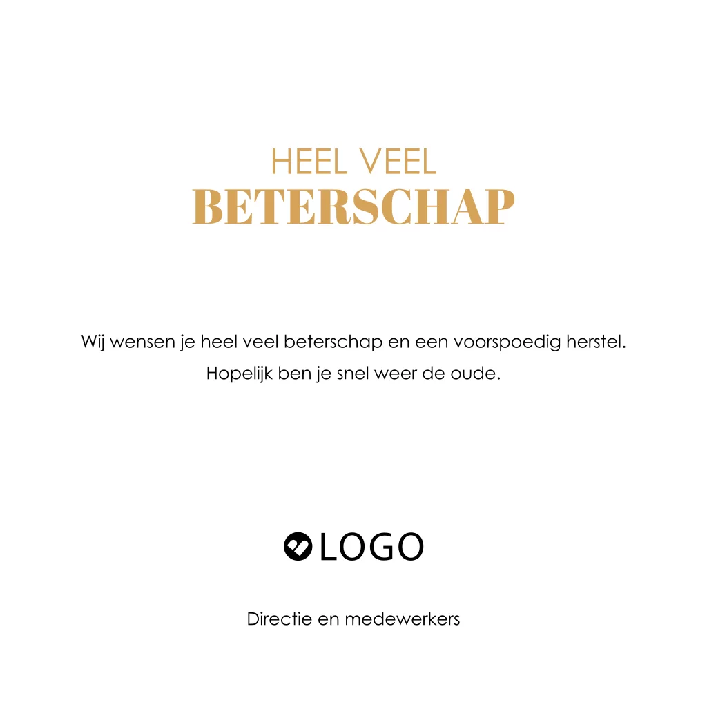 Een stijlvolle beterschapswenskaart voor zakelijk gebruik. Pas de kaart eenvoudig aan in de editor en voeg een eigen logo aan de binnenkant toe.